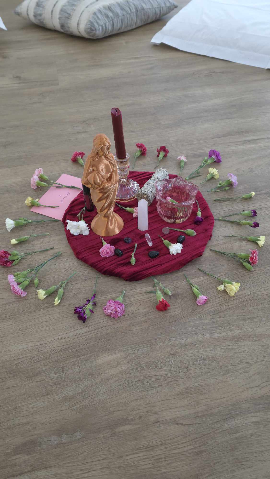 ✔ Birth altar: you will receive a complete altar, including crystals, candles, statues, and sacred elements to anchor your journey through birth